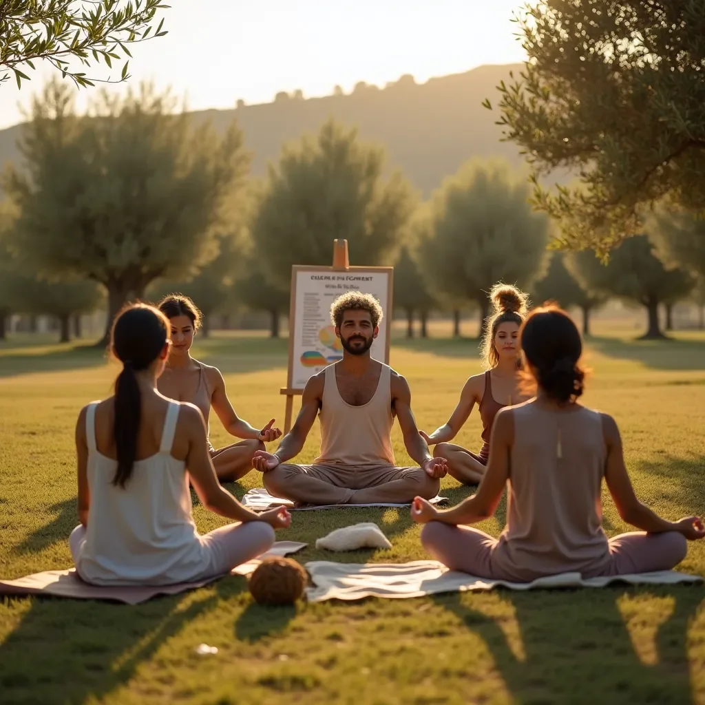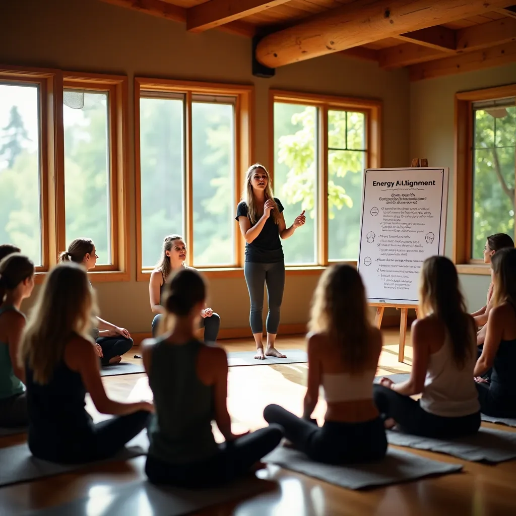 Taller grupal que explora técnicas de alineación de energía y respiración.